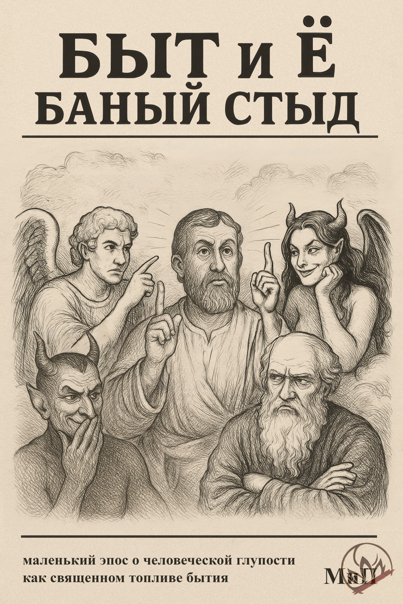 «Быт и Ёбаный стыд» — это реверсивное прочтение Книги Бытия, превращённое в эпизодическое кабаре о провале миротворения. Бог здесь — уставший управленец космического проекта, ангелы — бюрократический хор, демоны — дерзкий отдел разработок, а человек — баг в системе.
